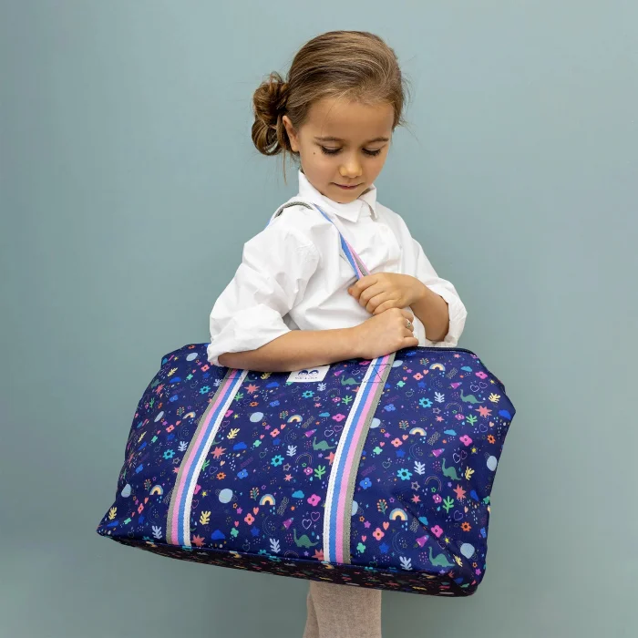With its cute patterns, large interior volume, and adjustable shoulder strap, this sweet bag is perfect for accompanying camping trips, sleepovers, weekend trips or sports days!
