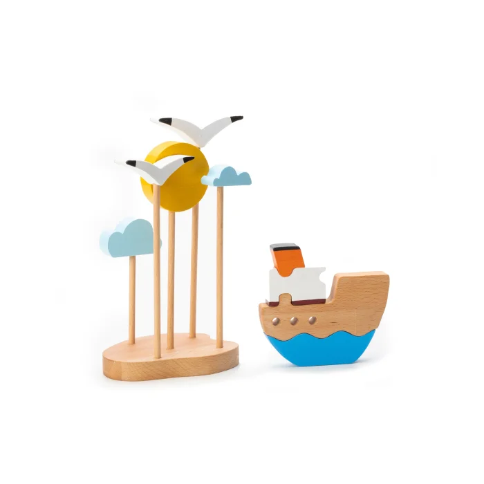 Product: Handcrafted Ferry Expedition Wooden Play Set Inspired By Istanbul With Seagulls & Sun