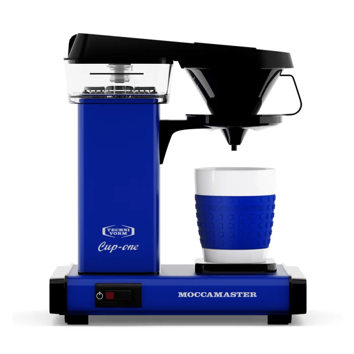 Moccamaster Cup-one is a recent innovation in the series Moccamaster coffee machines of Technivorm. The pulsating part of the heating element provides an optimal water/coffee contact time. Moccamaster Cup-one brews a good old fashioned cup of coffee, with a wonderful aroma directly into the matching mug!