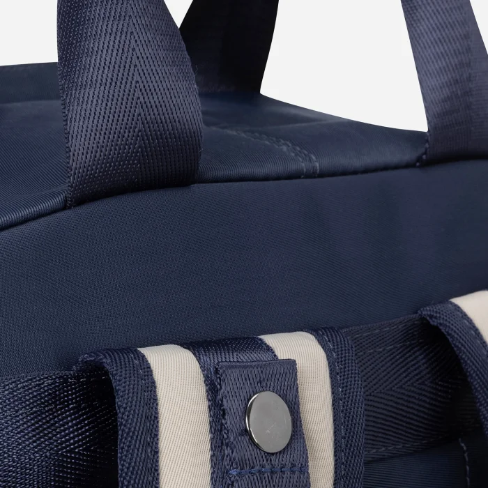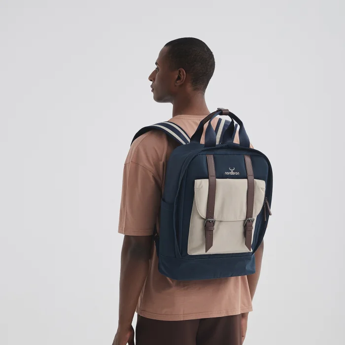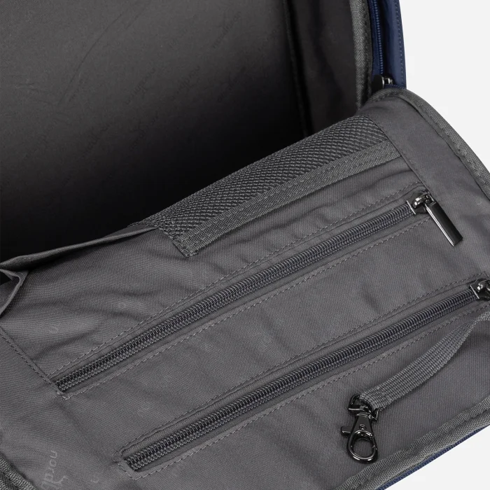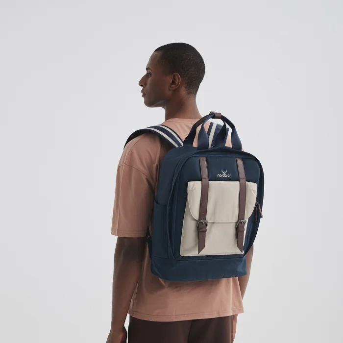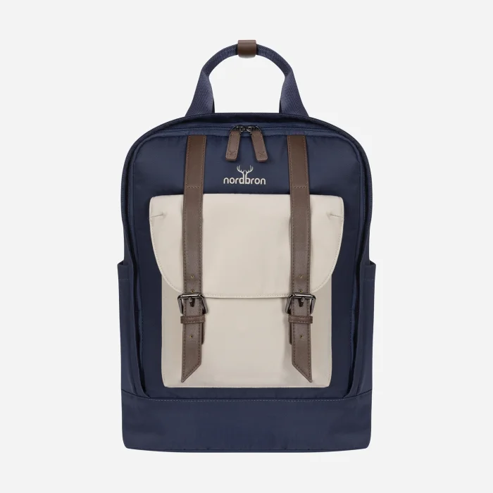 Padded laptop compartment inside (15.6 inches) Adjustable shoulder strap Front compartment with leather belt Small compartments on the inner and outer sides Large compartments with or without zippers inside and outside Water repellent fabric feature Volume: 17L Internal depth: 13 cm Width: 31 cm Height: 44 cm Weight: 900 gr.