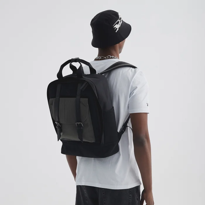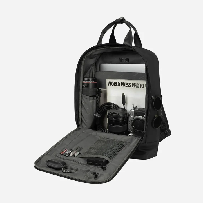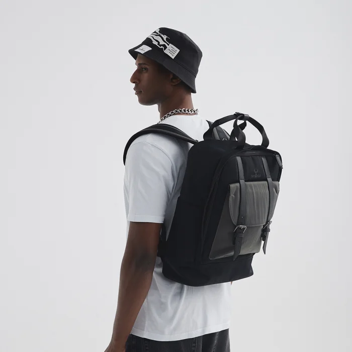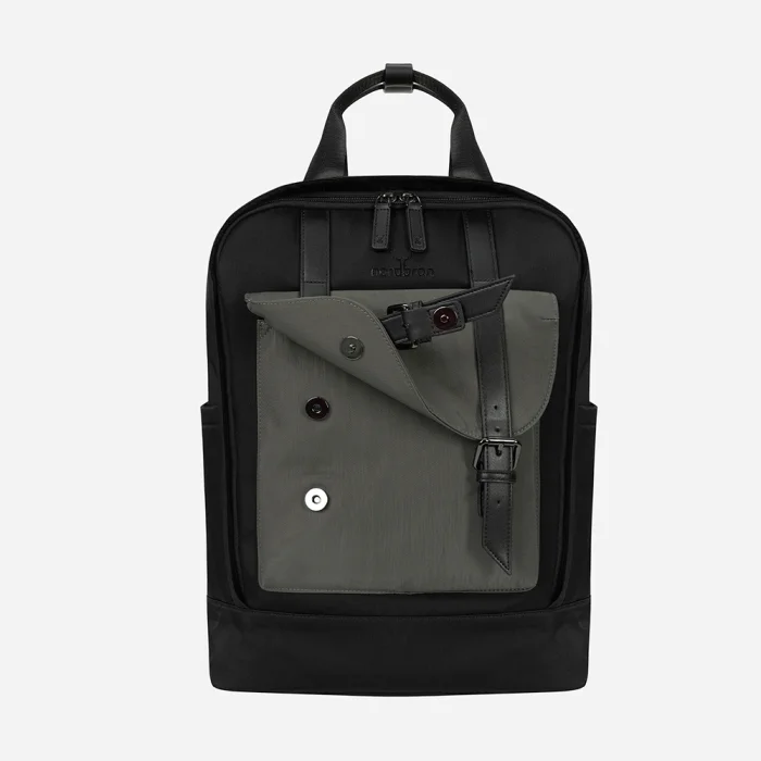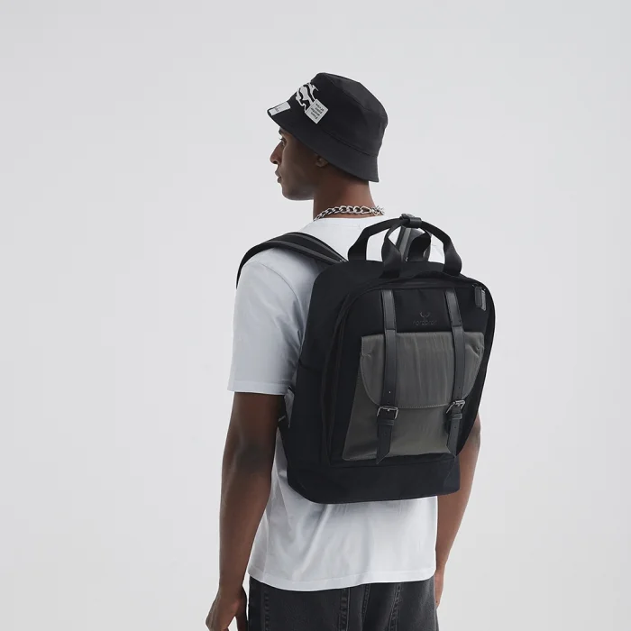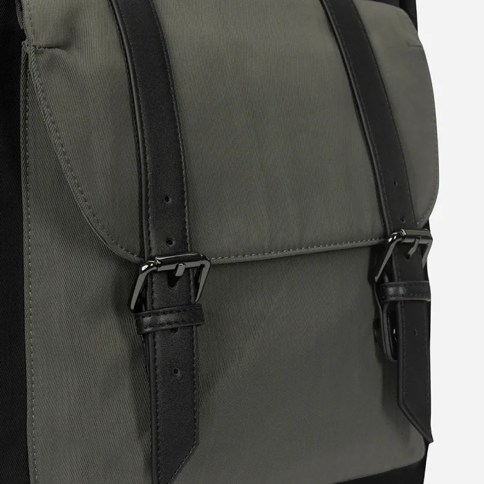 Padded laptop compartment inside (15.6 inches) Adjustable shoulder strap Front compartment with leather belt Small compartments on the inner and outer sides Large compartments with or without zippers inside and outside Water repellent fabric feature Volume: 17L Internal depth: 13 cm Width: 31 cm Height: 44 cm Weight: 900 gr.