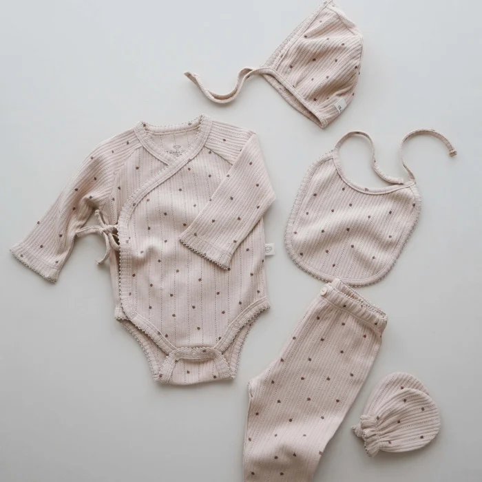 5-piece Double Breasted Newborn Set With Flower-patterned