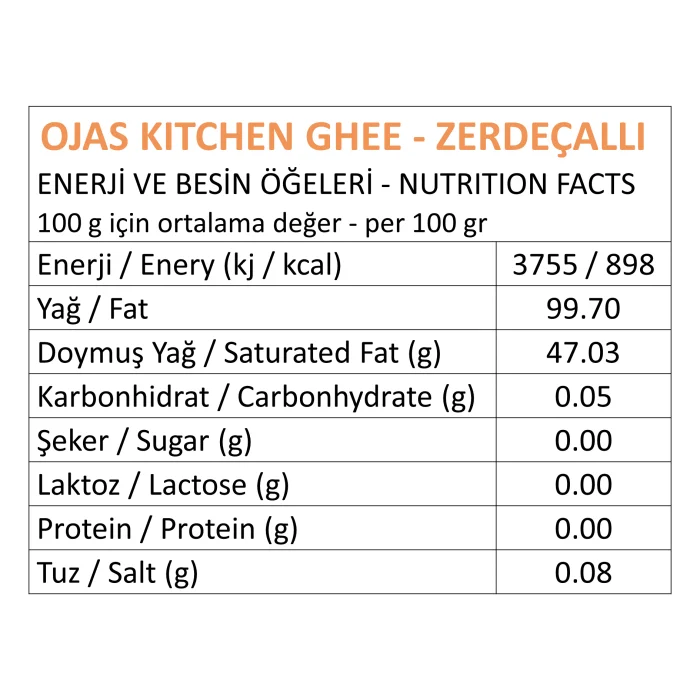 It is produced in the care of our home. It is cooked from real fermented butter in small batches at home instead of large machines, with traditional ayurvedic recipe and separated. It is produced from real fermented butter. We tried over 100 butters from all over Turkey to reach the right and most delicious Ghee. As a result, we have reached the butter produced by fermentation, not from the milk and cream of cows fed with natural methods, not with feed. We have documented this with our GMO analysis results. Real Ghee does not contain any milk residue as the butter is completely separated from the butter. Our analysis results document that we are lactose and GMO-free. Since Ojas Kitchen Ghee does not contain lactose, it does not burn as quickly as other oils during cooking, and has a burning temperature of 250 degrees. For this reason, it is one of the healthiest and safest oils for cooking. However, we recommend that people who are allergic to dairy products consult their doctor. Ojas Kitchen Ghee is very delicious as you can see in the comments. We never change our source of safe butter, we do not add any additives. Thus, we are always sure of its taste and quality.