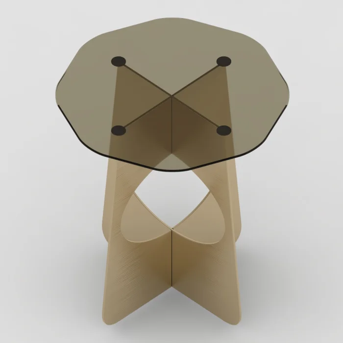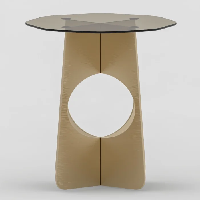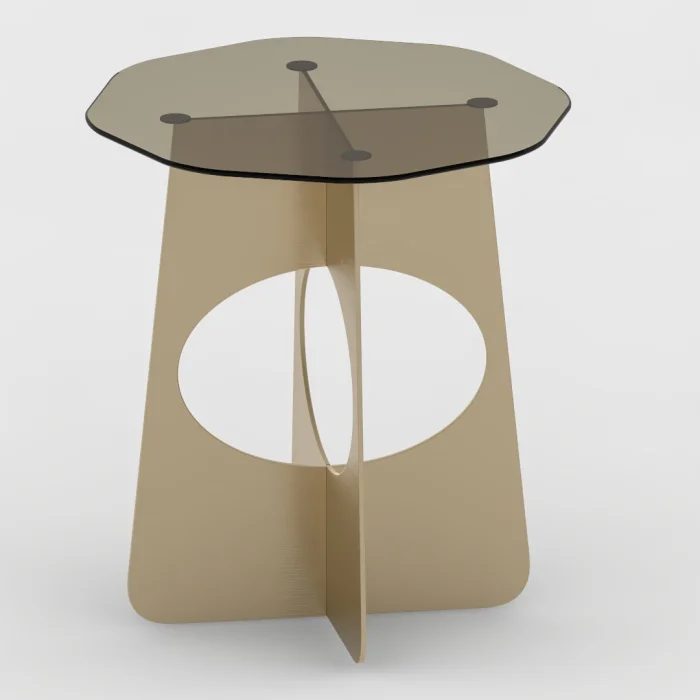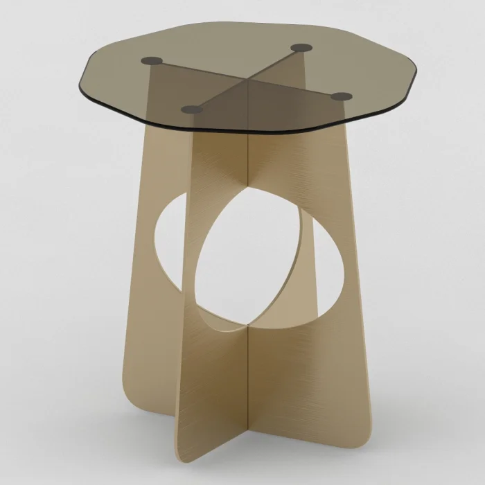 • tempered bronze glass, the legs are made of metal laser-cut sheet.