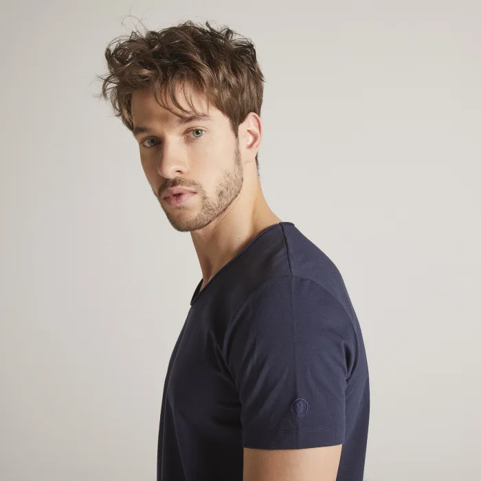 Men's Sausage Collar Basic T-Shirt made of organic cotton. It provides you comfort and flexibility all day long with its cotton texture and lycra fabric. Thanks to its breathable fabric, your skin stays more comfortable and dry. The instructions are printed on the product, not an annoying label. Our brand logo is embroidered on the sleeve of the product with a quality embroidery. Material:95% organic cotton, 5% elastane (lycra) for elasticity. GOTS certified organic cotton is used in our products. Model's measurements: Height: 184 Bust: 100 Waist: 74 Hips: 97 Size above the model: M By purchasing products produced with organic cotton, you can contribute to nature and the future.