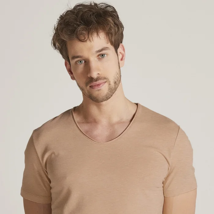 Men's Sausage Collar Basic T-Shirt made of organic cotton. It provides you comfort and flexibility all day long with its cotton texture and lycra fabric. Thanks to its breathable fabric, your skin stays more comfortable and dry. The instructions are printed on the product, not an annoying label. Our brand logo is embroidered on the sleeve of the product with a quality embroidery. Material:95% organic cotton, 5% elastane (lycra) for elasticity. GOTS certified organic cotton is used in our products. Model's measurements: Height: 184 Bust: 100 Waist: 74 Hips: 97 Size above the model: M By purchasing products produced with organic cotton, you can contribute to nature and the future.