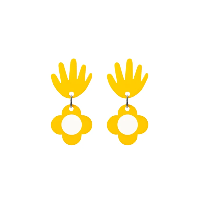 2 earrings consisting of Project Anxiety icons made of waste pleats.