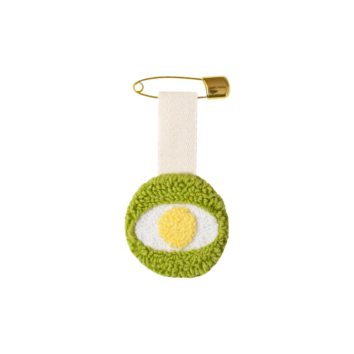 Medallion with a diameter of 5.5 cm, consisting of a velvet hanger and a safety pin in matching colors, produced with the punch technique.
