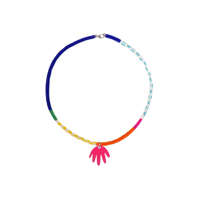 The necklace part is handcrafted from beads that are compatible with the other colors of the collection.