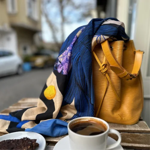 The edges of our scarves, whose patterns are carefully selected, are produced with a special touch by turning them by hand. Each scarf is carefully packed in a cotton pouch and sets out for you. Our products are produced using only vegan silk and/or cotton. 70% Cotton, 30% Silk