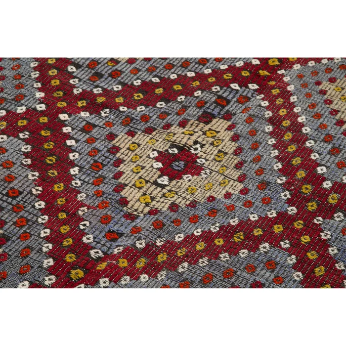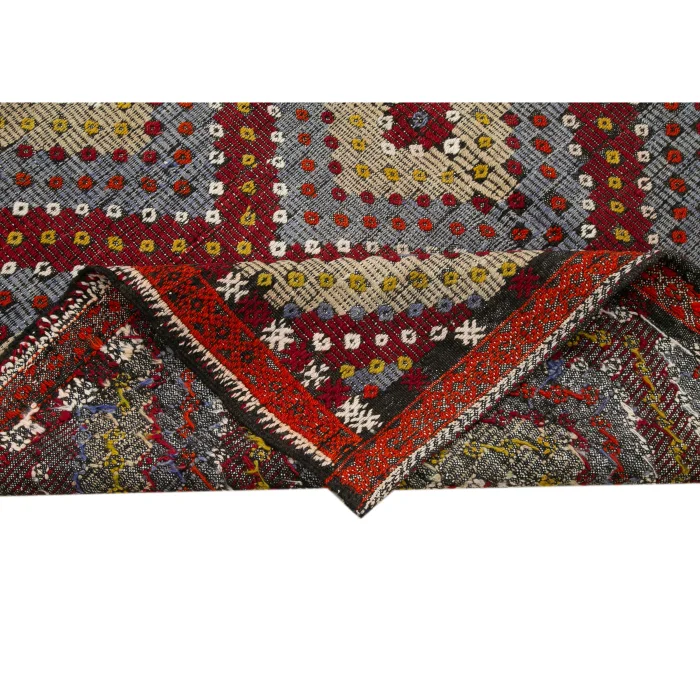 Vintage Cicim Rug is 174 cm wide, 327 cm long, 5 mm thick, and weighs an average of 12 kg. It is made of hand-spun 100% Organic Wool and Bristle. Root dye obtained naturally is used. / Vintage Cecim kilims are on 174 cm widht and 327 cm lenght and the pile height is 5mm, the approximate weight of the rug is 12 kg. It's 100% handknotted wool and goat hair rug. It's made from the natural dye.
