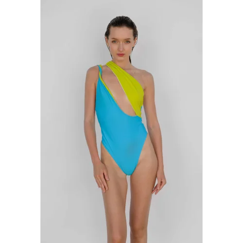Orange and pink blocky Shoulder line with twist detail in contrasting color Back binding can be customized. Chain and piping will be sent with the product. Tare is wearing a size XS. Model dimensions:  Bust: 80.5cm Waist: 60cm Hips: 89 cm Height: 177cm. 80% Polyamide 20% Elastane