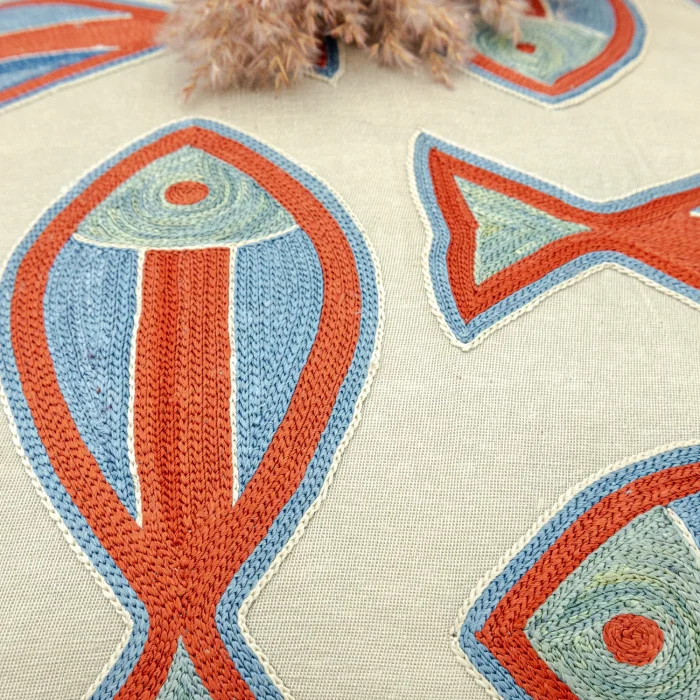 Product: Berter Fish Patterned Silk Cushion 50x50 Cm