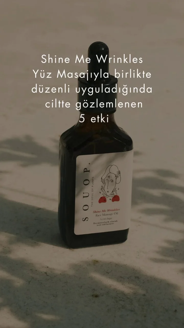 Dermatologically tested. Suitable for all skin types. Shine Me Wrinkles (Facial Vitalization oil / Facial Massage (Face Yoga Oil)Shine Me Wrinkles Facial massage oil is formulated with nourishing and restorative natural oils such as Immortal Flower, Frakincense, Geranium, Rosehip, Avocado, Jojoba and Borage.