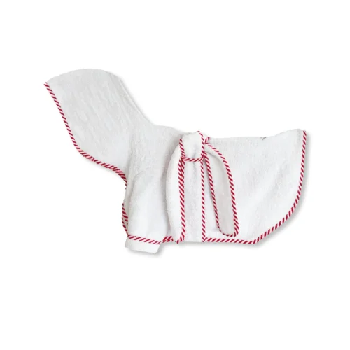 Made with %100 cotton, this robe can be tied by the waist for a pawfect fit and features a loose hood .