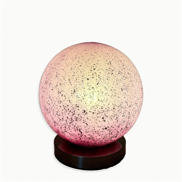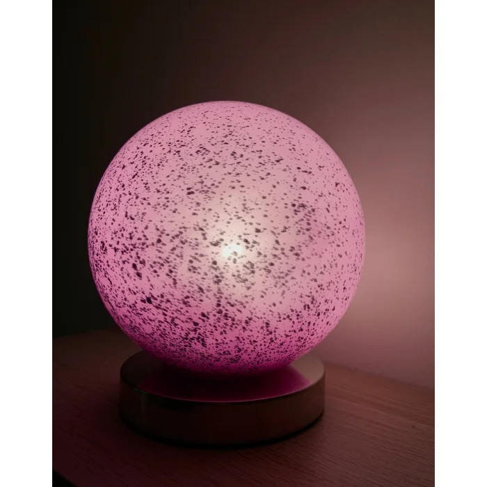 Mouth blown glass in purple and black finished with silver brass. Each piece is unique. Works with E14 lightbulb.