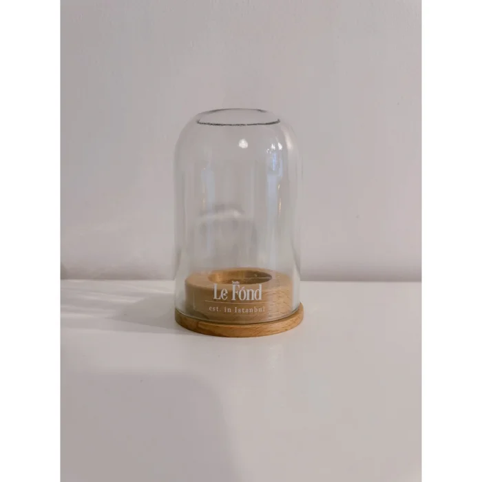 After all the bottles are completely disinfected, they are cut and polished by hand. The wooden base is made from 100% beechwood. It is compatible with all tealight candles.