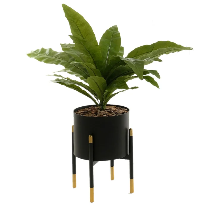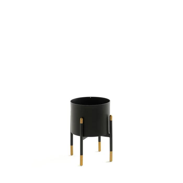 Metal Flower Pot: Aluminum plastering metal flower pot; It is black color, electrostatic powder paint. Aluminum pots are water resistant and you can easily plant any plant you want in them.