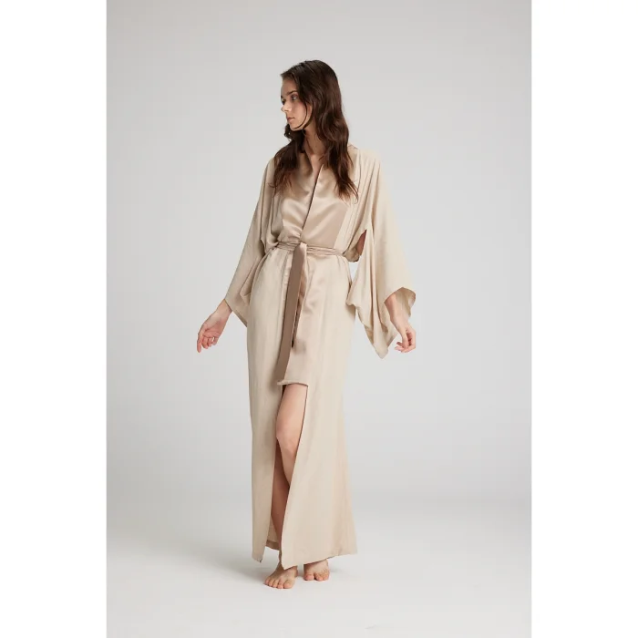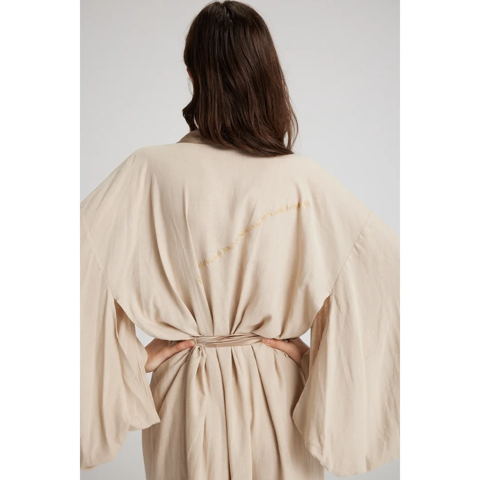 Product: Altın İşlemeli Saten Keten Sabahlık