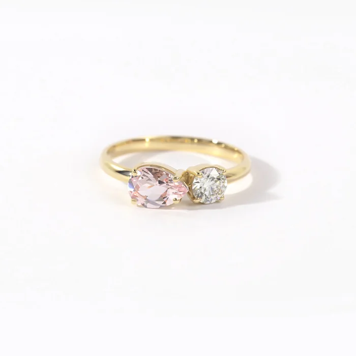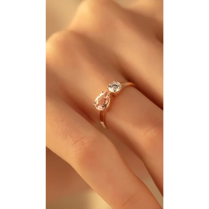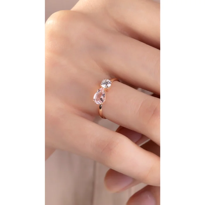 Diamond And Pink Morganite 14k Love Ring