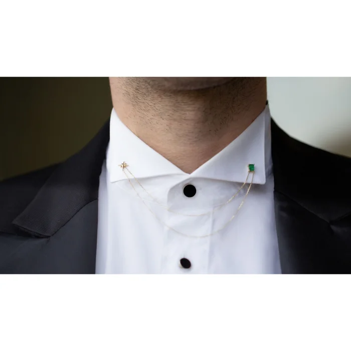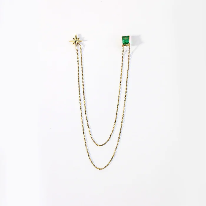 Emerald Stick 14k Pin With North Star