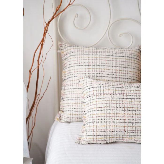 The softness and tough texture of natural cotton combine with the original abstract pattern, allowing you to capture the atmosphere you desire in your living spaces.