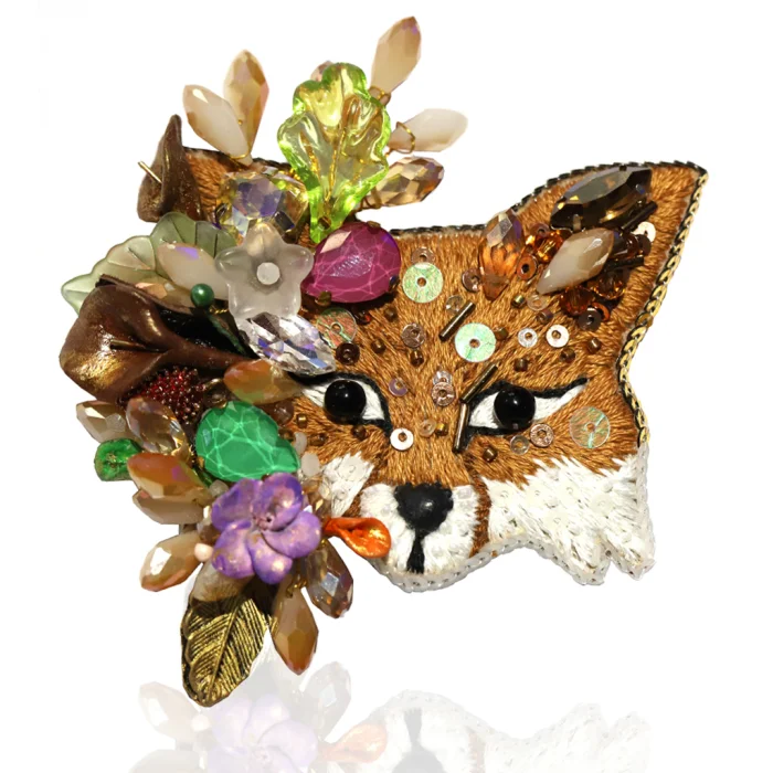 Miyuki bead, check beads, swaroski stones, dmc embroidery, italy sequins designed leather back brooch.