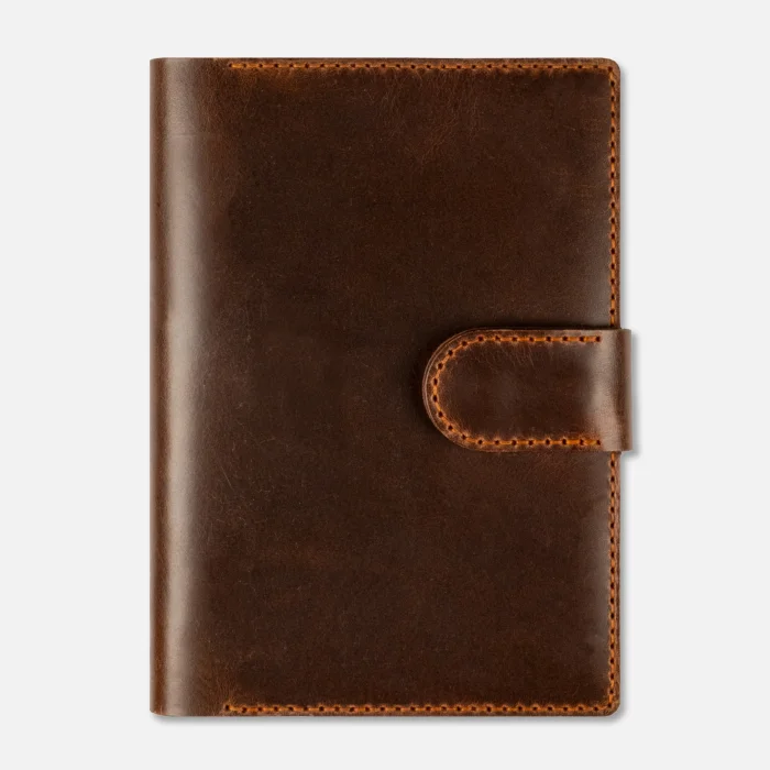 A5 Deri Defter Kılıfı Ürün içerisine; defter, kalem, kart, not kağıdı gibi materyaller konulabilir. Ürün Özellikleri; Kılıfın her iki bölmesinde de kart yerleri vardır. Full Grain Dana Derisi A5 defterler ve ajandalar için standart ölçülerdedir. Kapalı ebatları: 17cm x 23,5cm Ürünlerimiz tamamen el yapımı olduğu için ve derilerin doğası gereği görselden ufak farklılıklar içerebilmektedir. Kalem konulması için özel bölmesi vardır. Tamamen El Dikişi ile yapılmıştır. Premium kalite sertifikalı dana derisinden yapılmıştır.