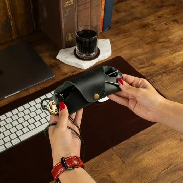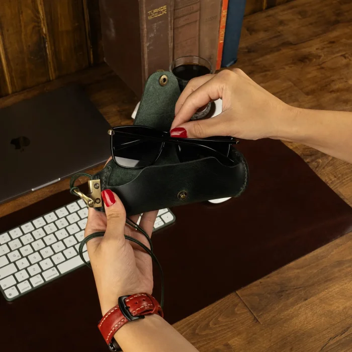 Leather Glasses Case Stylish and durable leather glasses case reliably protects your glasses from scratches. We have processed years of tradition into leather with our quality workmanship. In this way, you will have a unique product. It is prepared from 100% calfskin. The product is completely handmade. Therefore, it may contain slight differences from the image. Our aim, unlike ready-made products, is for everyone to feel special and for you to be happy as you use the products. The dimensions of the case are 70 mm wide, 180 mm long and 2.4 mm thick. Additionally, it is equipped with a 50 cm long adjustable rope, so you can easily carry it with you all day long. With its classic design, it is an ideal choice for both daily use and as a gift. Each product has a story and is carefully prepared for you by expert hands.