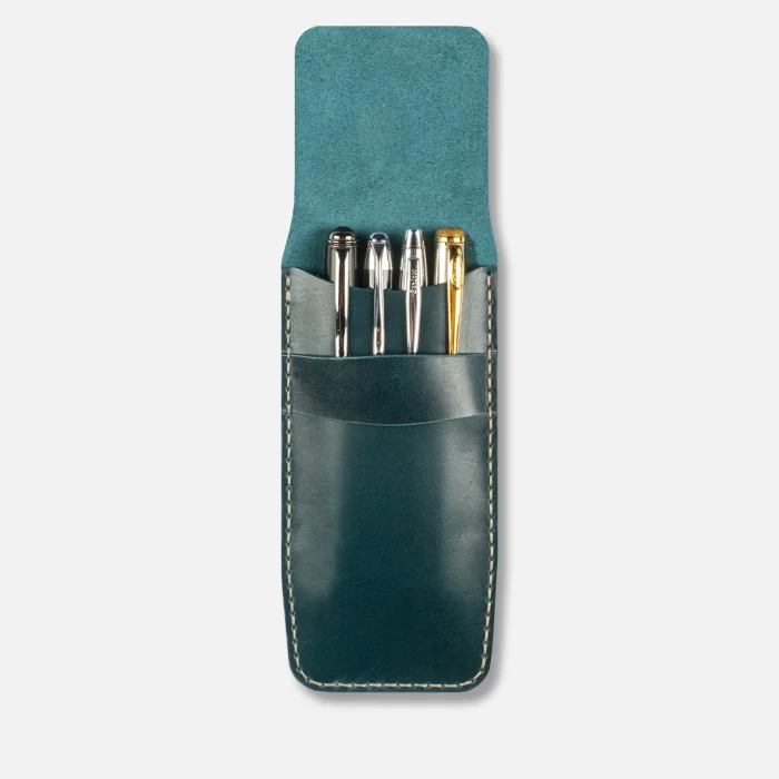 Leather Pen Holder We have a leather pen holder in stock where you can carry your pens safely. It will not get lost among your other belongings in your bag and its stylish appearance will amaze you. With its many color options, you will never want to leave it with you. Be sure to take a look, it's completely handmade.