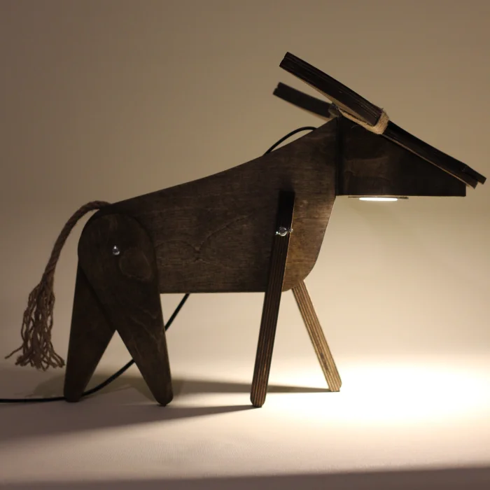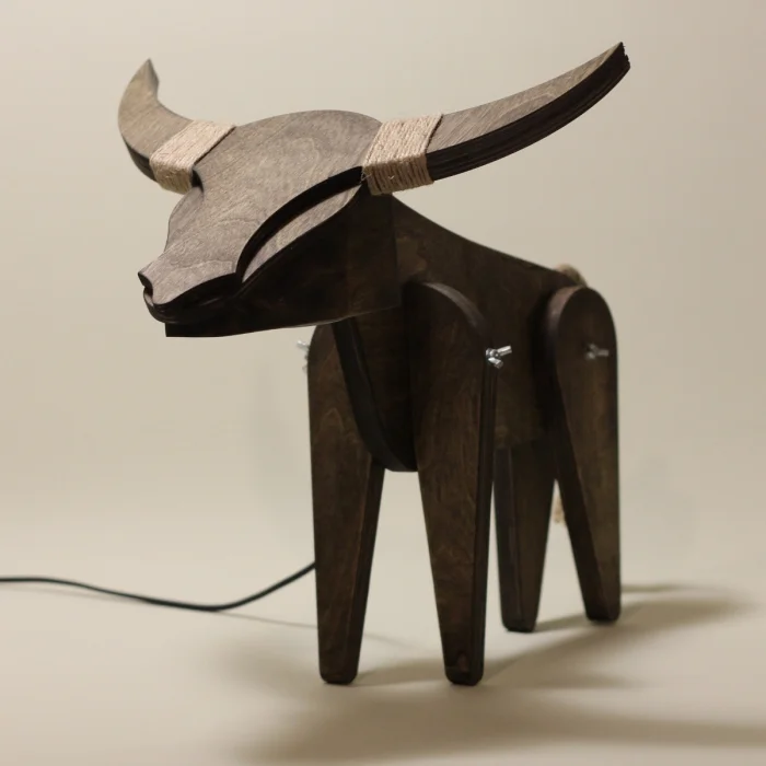 Product Details The head part of the Oxlamp is made of solid linden, the body part is made of 1st class marine birch press panel and combined by hand. The application of wooden surfaces is terminated with EN 71-3 certified walnut-colored natural oil. Since it is made of solid wood, slight differences such as knots and color tones can be observed. Daylight Spot Led is used in the lighting section. A 2 meter long cable with an on-off button is used.