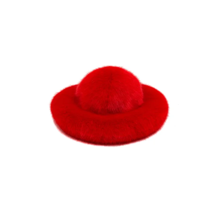 Faux fur bucket hat in red