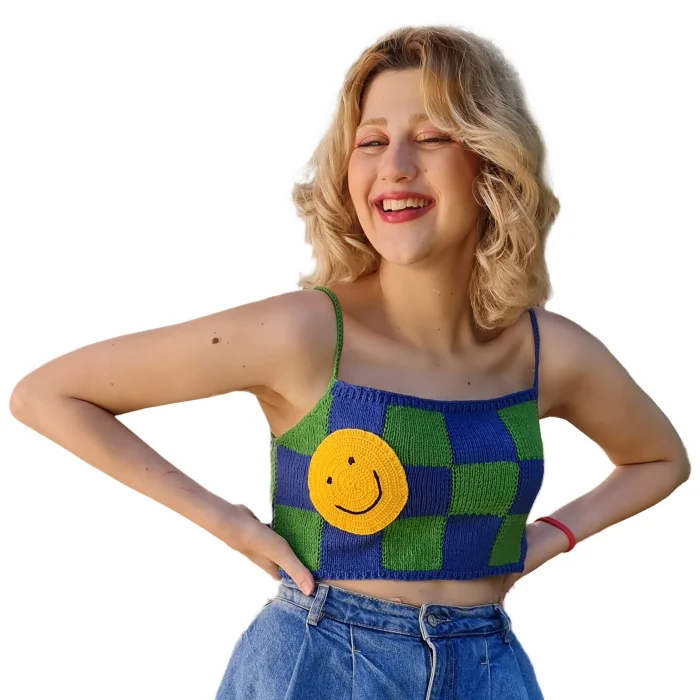 Since it is hand-knitted, there may be slight variations in the patterns. Due to the stretchy structure and loose fit, it can be worn by sizes XS, S, and M. Model measurements: Height: 177 cm, Size: S Material: 45% Acrylic - 55% Cotton