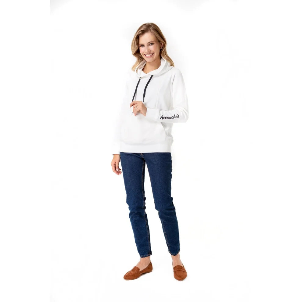 This sweatshirt, which is designed so that Accouchée women who love to dress sportily and comfortably can maintain their style during breastfeeding, pampers you with its soft texture. Thanks to the hidden zippers on both chest lines, you can reach your chest quickly and easily. If you open the zipper only enough to remove the chest during use, your baby's head will close the opening, so you can breastfeed even at the most crowded table without going inside, and you will not fall behind in social life.
