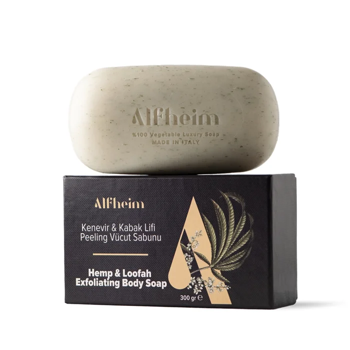 Ingredients: Hemp Seed Extract, Ground Pumpkin Fiber It is produced exclusively for Alfheim by skilled craftsmen in an Italian town built on the grandeels of Sacro Monte di Varese, near the shores of Lake Maggiore in Italy, preserving the old traditional Marseille soap method. In its natural formula that does not contain palm oil, coconut and sunflower based, miraculous Hemp extract and natural loofah grains exfoliate the skin and gently remove dead cells. How to Use: Apply to damp skin with circular massage movements until creamy foam is formed. It's also excellent as an exfoliator for dry kneecaps and elbows.