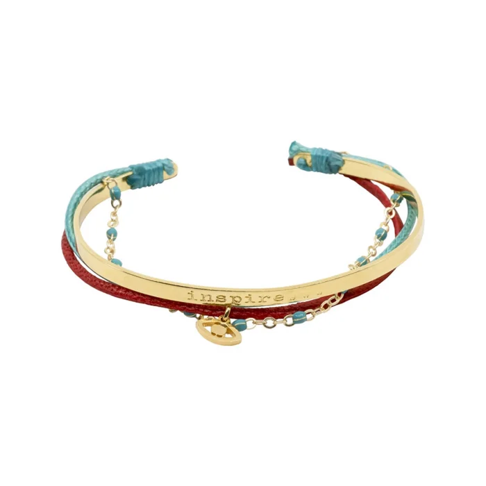 Candlewick wrap bracelet with gold filled brass blue enameled evil eye connector and clasps.