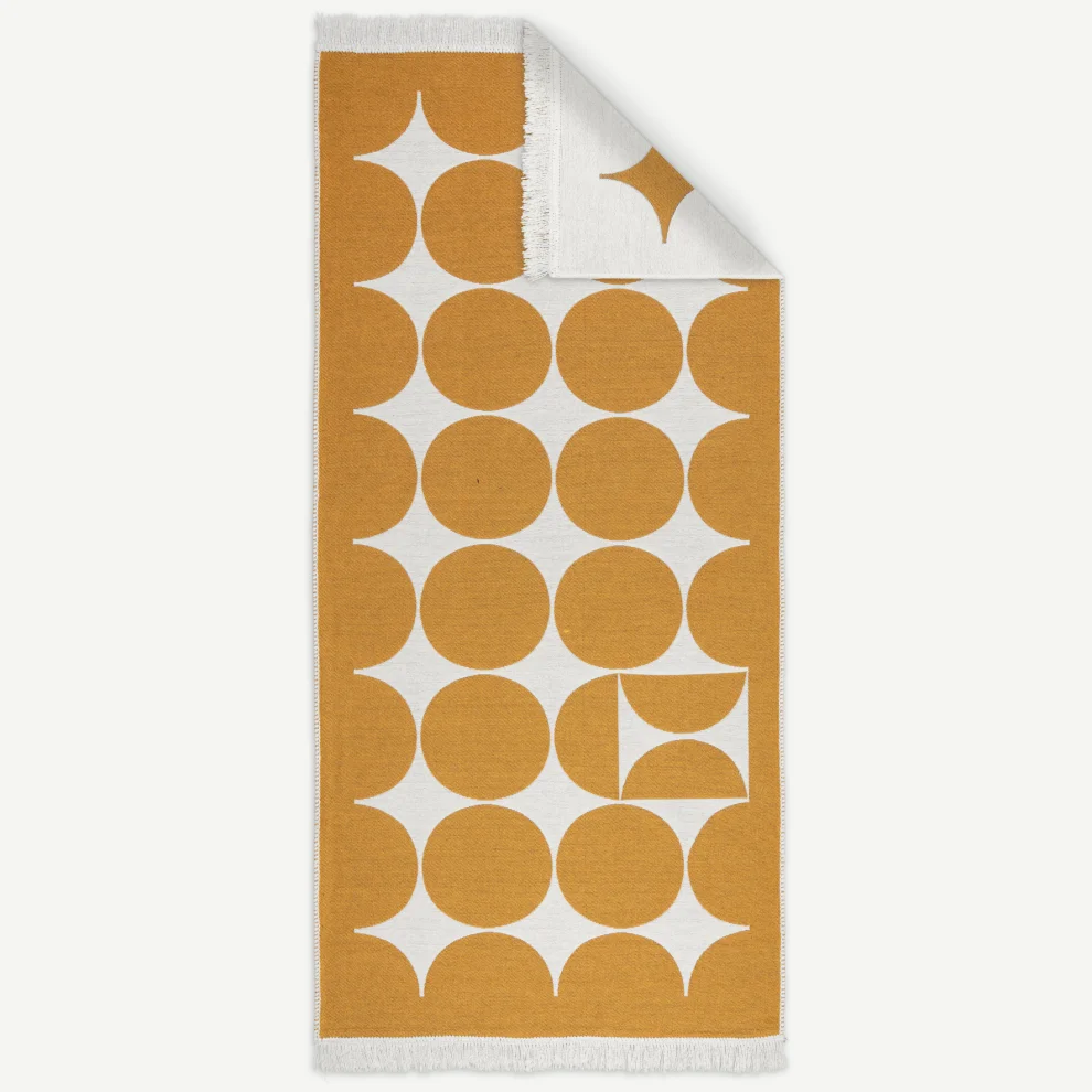 Circle Flat Weave Mid Century Rug Black Geometric Retro Area Accent Runner Rug