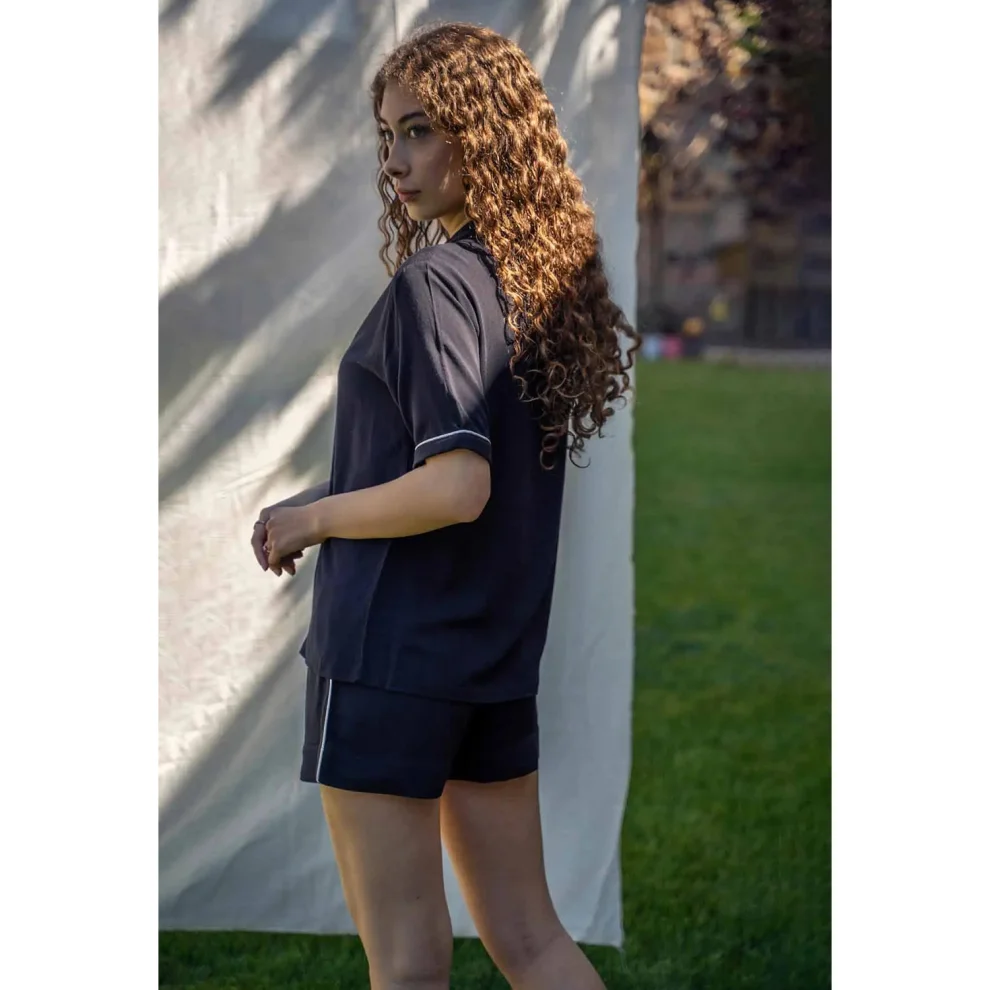 Details: Elastic waist and no pockets. Top and bottom are delivered together as a set. Material: 100% Belmando Viscose Fabric, produced in Turkey. %100Viscose Measurements of the Mannequin in the Photo: Height: 177 cm, Bust: 85 cm, Waist: 61 cm, Hips: 92 cm, Size: S