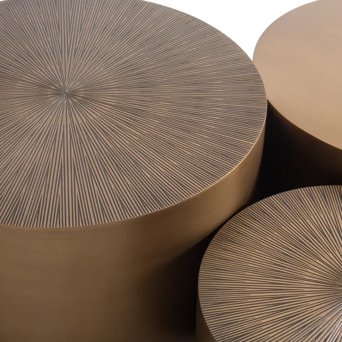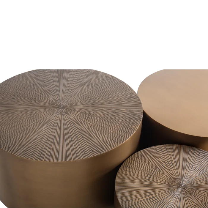 Product: Gamma Round Triple Wooden Center Table Set Brass