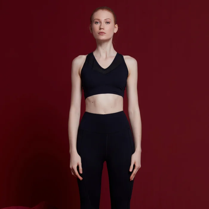 Sasha bralette, is made of mesh panels which gives this bra very supportive and feminen feeling and also visually appeallling. You can use this sports bra into any sportive activities and you can easily combine it with your high wasit jeans to have a cool and trendy look. This bra is not padded however, it is double faced so it doesn`t show any skin and enhances out your natural shape.