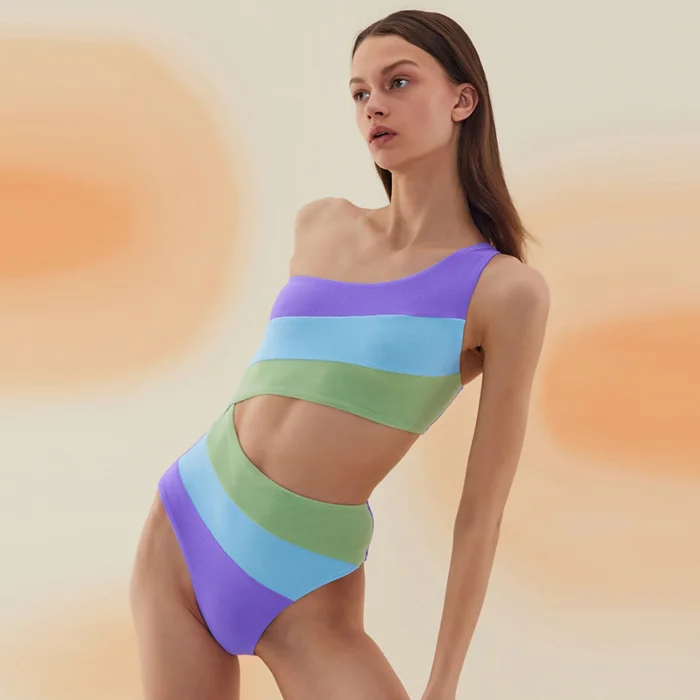 Product: Playa Pistachio Green One Shoulder Asymmetrical Swimsuit