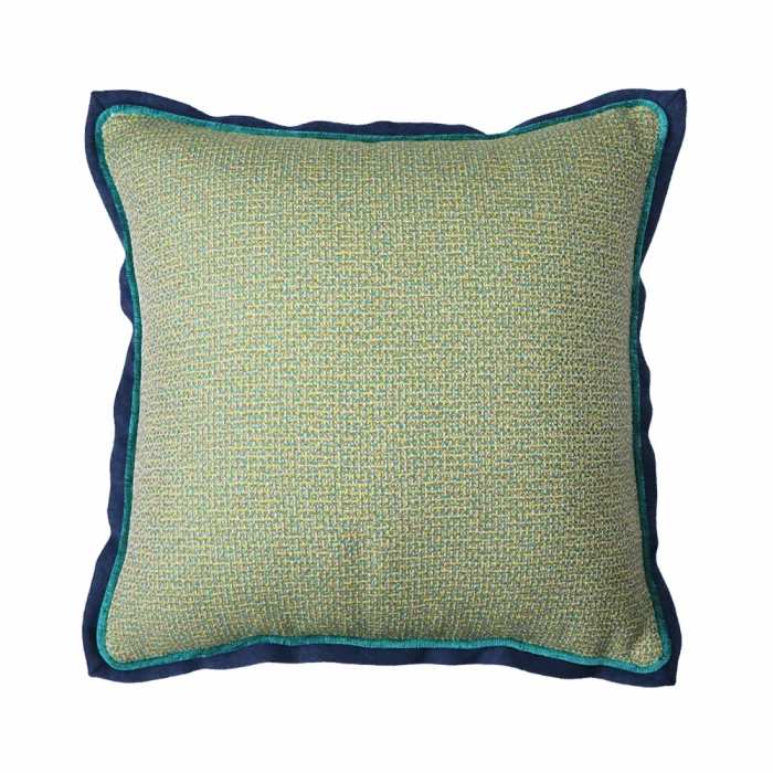 Square, self-green-turquoise textured, turquoise glossy velvet corduroy, navy blue piping pillow