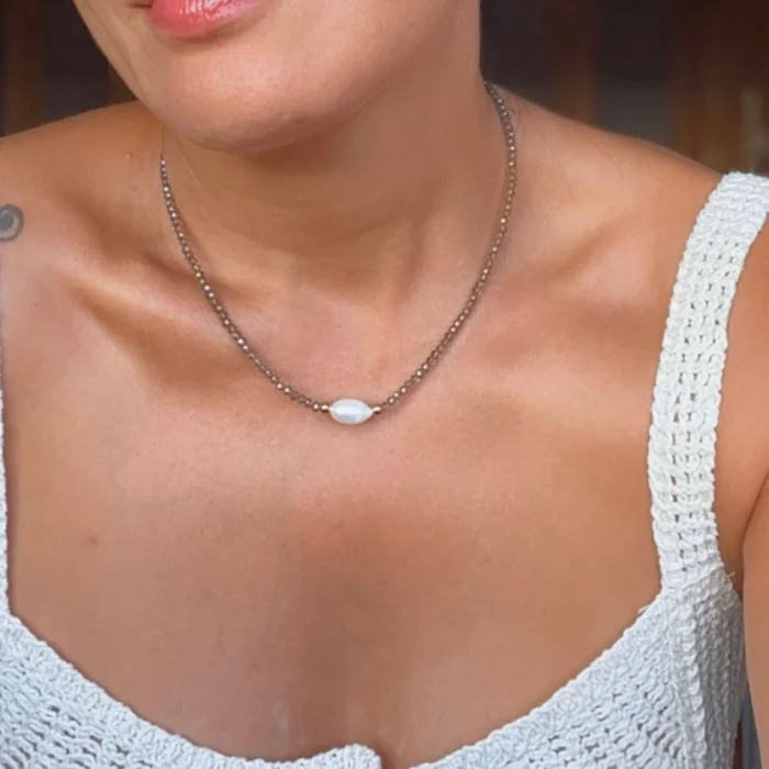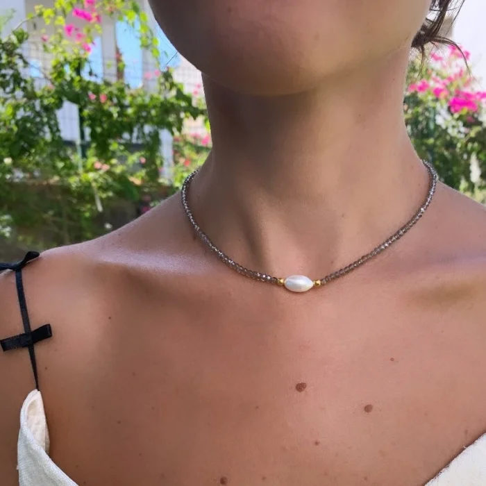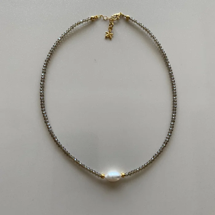 It was made with natural cultured pearl and Crystal gold reflection beads. The tarnishing first-class coating was made with quality gold apparatus. Size information: It is 42 cm and there is an extension chain. You can enjoy using it for many years.