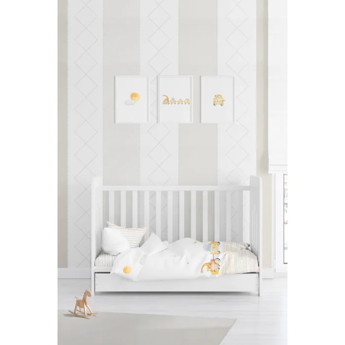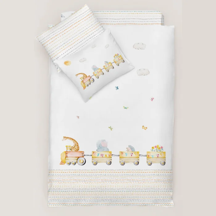 Sheet: 1 piece 120x180cm Duvet cover: 1 piece 100x150 cm Pillow Case: 2 pcs 35x45cm Casadora Baby bedding set has a shiny, draping and silky softness thanks to its satin fabric