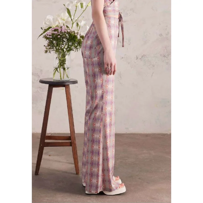 Spanish leg trousers with elasticated waist back, front closure button and zip