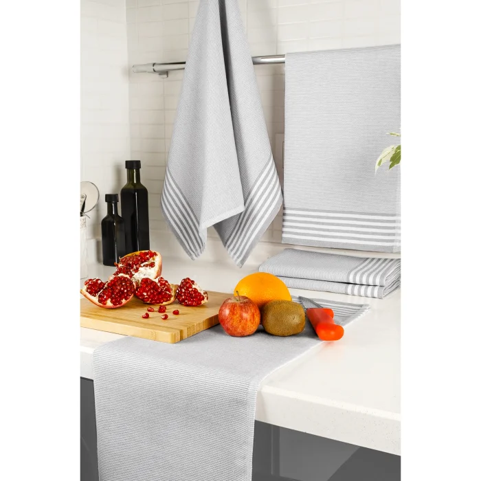 1. Our tea towels, which are made of quality cotton, have high absorbency and a soft texture. There are 5 gray tea towels in our 5-piece tea towel set. The yarn is produced as dyed. In this way, there is no fading or deformation in long-term use. Our tea towels can also be used as service napkins or feeding cloths in schools.