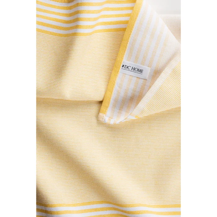 1. Our tea towels, which are made of quality cotton, have high absorbency and a soft texture. There are 5 yellow tea towels in our 5-piece tea towel set. The yarn is produced as dyed. In this way, there is no fading or deformation in long-term use. Our tea towels can also be used as service napkins or feeding cloths in schools.