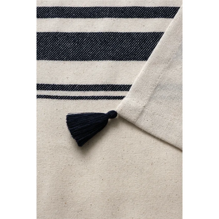 Tereza Navy Blue Runner You will catch a stylish atmosphere on your tables with our navy blue runner model, where you can get both a modern and retro look with its striped pattern. Our navy blue runner model, which has a quality and useful structure, is suitable for long-term use; It has straight stitches on all four sides. ; There are pompom details at the corners. ; Fabric Content: 65% cotton 35% polyester. ; Navy Blue Runner Size: 50 x 150 cm ; Our product is OEKO-TEX certified. ; Why Should I Buy Oeko-Tex Certified Products? Oeko-Tex certified products are products that have successfully passed all tests and approved according to international standards. ; It does not contain carcinogenic and allergenic materials. It does not irritate the skin and does not harm human health. ;