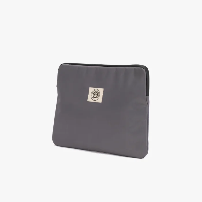 Water-repellent polyester fabric, water-repellent zipper, impact-resistant padding backing, rubber tensioner to secure the device on the inside, compatible for 13" - 14" devices