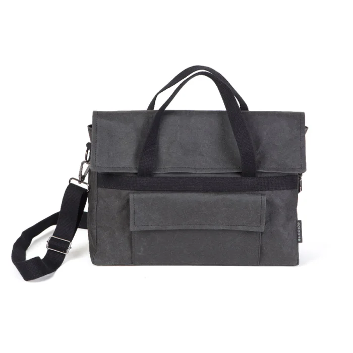Extremely light weight. This sophisticated paper design carry bag has an exterior pocket with an easy closure to keep your working life organized. It has adjustable stripes.